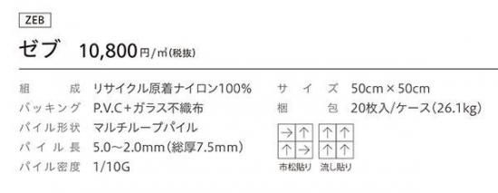 こちらのページでは、2025年10月に発売されたシンコールのタイルカーペットカタログ「 SQ PRO TILE CARPET2025-2028」掲載商品 ゼブ(ZEB-3111,ZEB-3121,ZEB-3131,ZEB-3112,ZEB-3122,ZEB-3132)がご購入頂けます。リフォーム、リノベーションなどDIYでの模様替えにおすすめです。 無料カットサンプルもご活用ください。3品番まで手配可能です。商品は注文確定後、2~3営業日以内に出荷予定です。