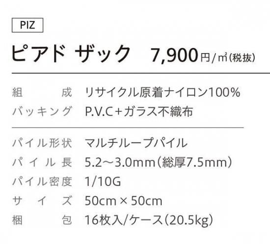 こちらのページでは、2025年10月に発売されたシンコールのタイルカーペットカタログ「 SQ PRO TILE CARPET2025-2028」掲載商品 ピアド ザック(PIZ-2031,PIZ-2032,PIZ-2033,PIZ-2034,PIZ-2035,PIZ-2036,PIZ-2037)がご購入頂けます。リフォーム、リノベーションなどDIYでの模様替えにおすすめです。 無料カットサンプルもご活用ください。3品番まで手配可能です。商品は注文確定後、2~3営業日以内に出荷予定です。
