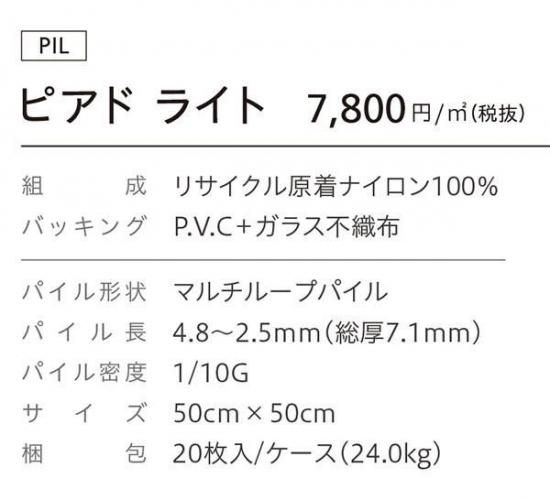 こちらのページでは、2025年10月に発売されたシンコールのタイルカーペットカタログ「 SQ PRO TILE CARPET2025-2028」掲載商品 ピアド ライト(PIL-915,PIL-916,PIL-917,PIL-918,PIL-919,PIL-920,PIL-921,PIL-922)がご購入頂けます。リフォーム、リノベーションなどDIYでの模様替えにおすすめです。 無料カットサンプルもご活用ください。3品番まで手配可能です。商品は注文確定後、2~3営業日以内に出荷予定です。