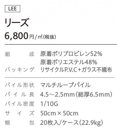 こちらのページでは、2025年10月に発売されたシンコールのタイルカーペットカタログ「 SQ PRO TILE CARPET2025-2028」掲載商品 リーズ(LEE-101,LEE-102,LEE-104,LEE-105)がご購入頂けます。リフォーム、リノベーションなどDIYでの模様替えにおすすめです。 無料カットサンプルもご活用ください。3品番まで手配可能です。商品は注文確定後、2~3営業日以内に出荷予定です。