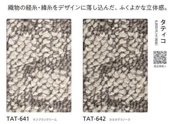 こちらのページでは、2025年10月に発売されたシンコールのタイルカーペットカタログ「 SQ PRO TILE CARPET2025-2028」掲載商品 タティコ (TAT-641,TAT-642)がご購入頂けます。リフォーム、リノベーションなどDIYでの模様替えにおすすめです。 無料カットサンプルもご活用ください。3品番まで手配可能です。商品は注文確定後、2~3営業日以内に出荷予定です。