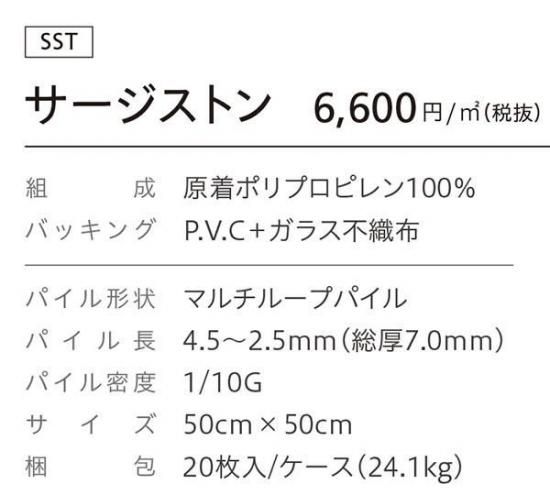 こちらのページでは、2025年10月に発売されたシンコールのタイルカーペットカタログ「 SQ PRO TILE CARPET2025-2028」掲載商品 サージストン (SST-781,SST-782,SST-783)がご購入頂けます。リフォーム、リノベーションなどDIYでの模様替えにおすすめです。 無料カットサンプルもご活用ください。3品番まで手配可能です。商品は注文確定後、2~3営業日以内に出荷予定です。